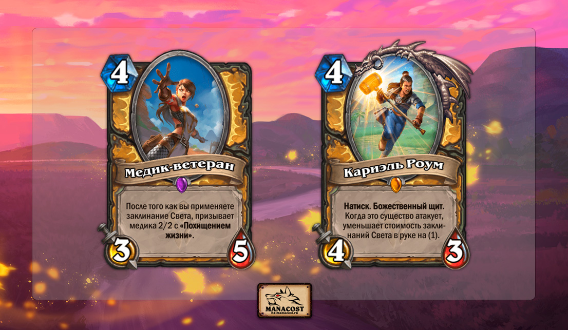 Кариэль Роум тоже не отстает. Ее вполне можно было бы назвать «играбельной» и без эффекта удешевления других карт (что вполне может произойти, если какой-то сборке понадобится просто сильный 4-й дроп). На самом деле, Манускрипт Паладину этот эффект тоже не так важен, поскольку алдоры и так хорошо справляются со своей задачей. Тем не менее, дешевый натиск с божественным щитом будет очень ценен для класса без точечных ремувалов.
