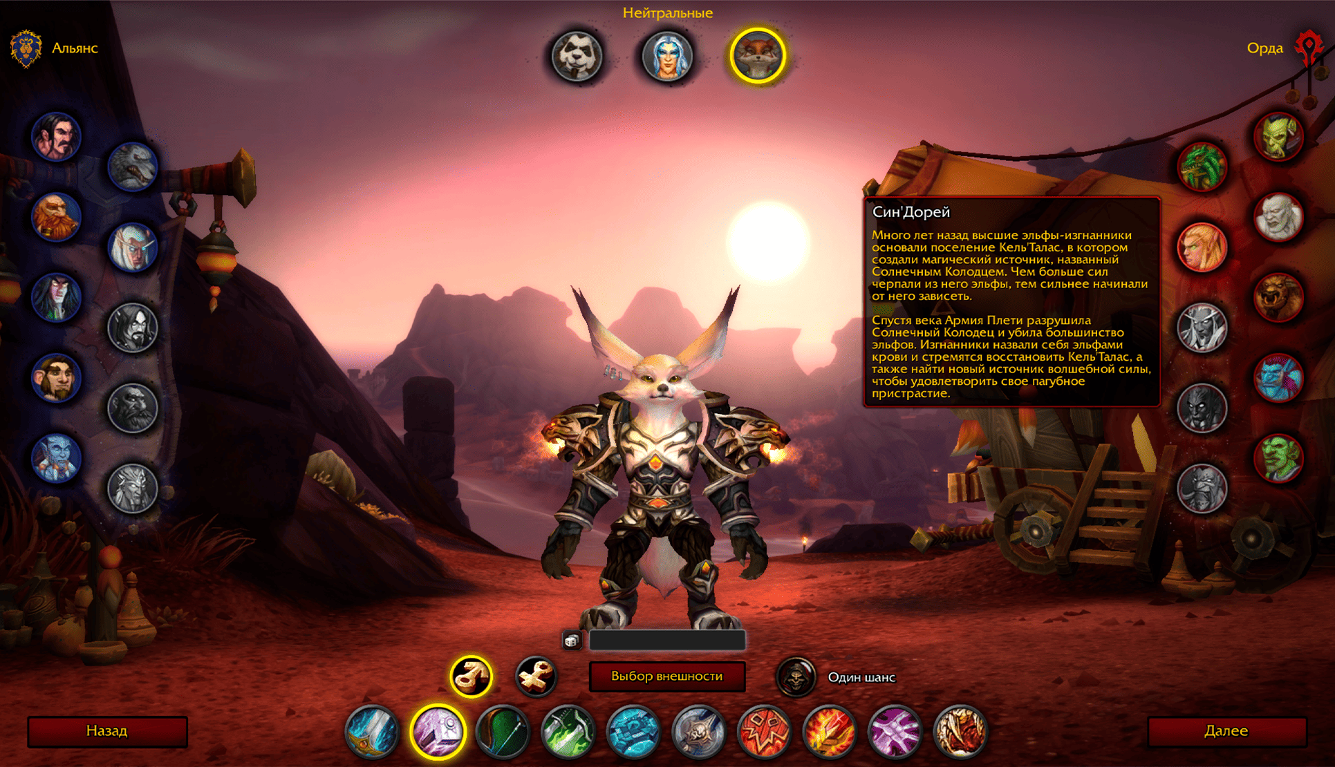 Главное, что бросается в глаза при создании персонажа — это невероятный выбор. Помимо классических рас, игрокам доступны воргены, высшие эльфы, наги, гоблины, пандарены, вульперы, зандалары, озаренные дренеи, дворфы черного железа, эредары, ночнорожденные, эльфы бездны и драктиры. Каждая из них обладает уникальными визуальными моделями, которые были бережно перенесены и оптимизированы для старого клиента игры. Но Сирус пошел дальше: здесь нет привязки способностей к внешности.