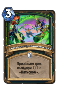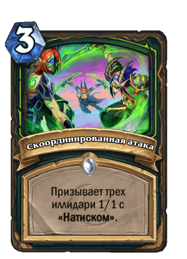 Поле битвы пока что выглядит самой слабой картой из трех. Для Агро ДХ играть ее в кривую ману кажется слишком медленно, а в поздней игре бафф будет не так существенен. В версии с натиском карта смотрится интереснее, поскольку бонус к атаке намного легче реализовать.