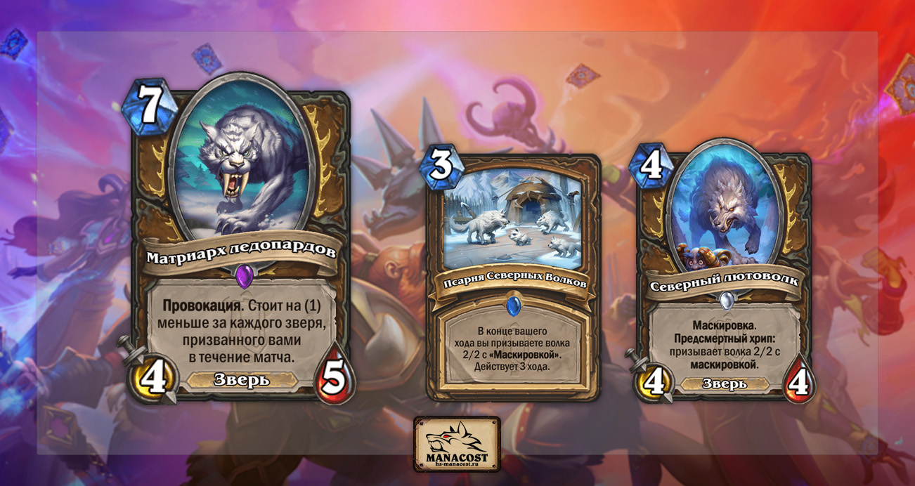 На самом деле, карты с лютоволками пока что не внушают доверия, и очень вероятно, что Матриарх леопардов может заиграть и без них. Он вполне вписывается даже в нынешнего Агро Таунт Друида, который уже использует Энергичную белку с Парковой пантерой, а к ним еще можно добавить Колдовского ворона и Нагруженного мула.