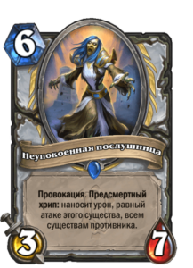 Текущие версии Жреца на хрипах, абсолютно защитной сборки, не дают карте героя никакой выгоды — только больше исцеления и брони. Именно из-за этого она не выглядит впечатляюще. Возможно, колода эволюционирует и станет использовать больше инициативных хрипов, которые помогут занять ей стол.