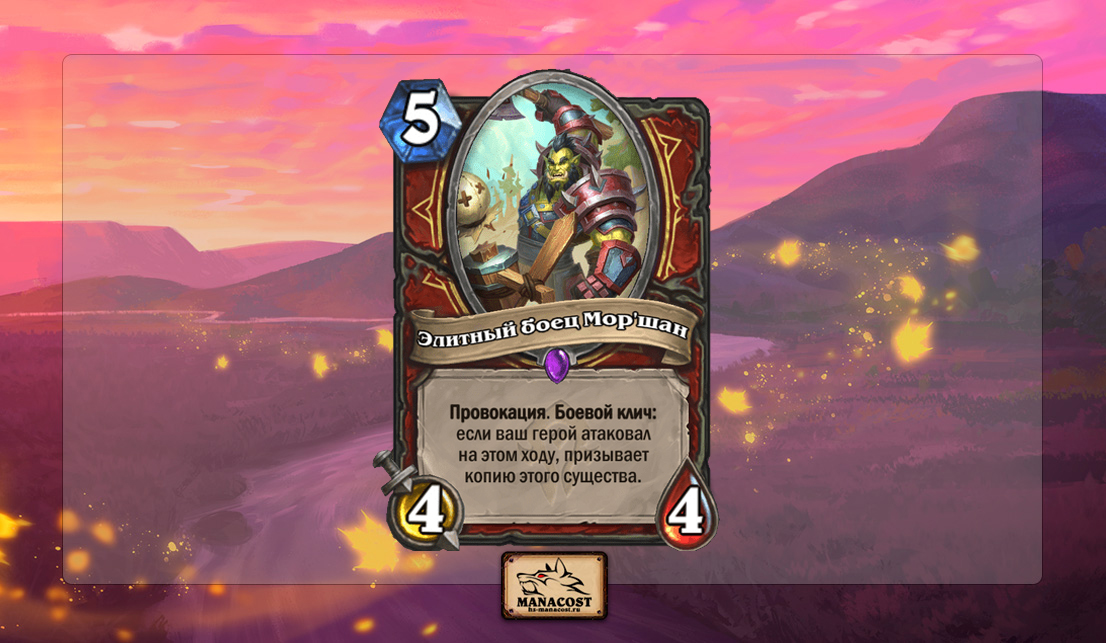 Сильная темповая угроза, если у Воина получится реализовать ее боевой клич. Для этого классу нужно будет играть больше копий оружия. Пока что у Воина не так много предпосылок для этого: в Вольный уйдут Боевой якорррь, Гайкалибур. Но по крайней мере останется Корсарский тайник — главная надежда на то, что Воин будет играть много копий оружия в своих колодах. А в этом случае Элитный боец Мор’шан станет неплохим дополнением сборок.