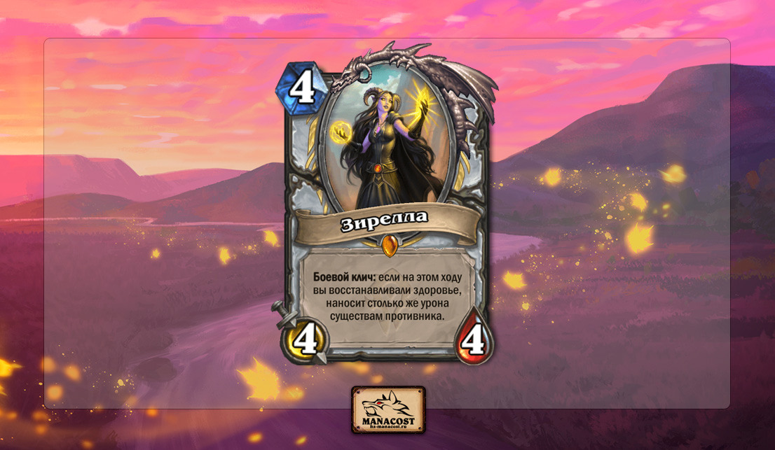 У легендарки огромный потенциал, но ее сила во многом зависит от исцеляющих эффектов Жреца. Вместе с Зиреллой выходит Молитва отчаяния, которая позволит нанести 10 урона всем существам оппонента. Также у Жреца будут Быстрое исцеление, Обновление, существа с похищением жизни и просто сила героя. Жаль, что в Вольный уйдет Круг исцеления.