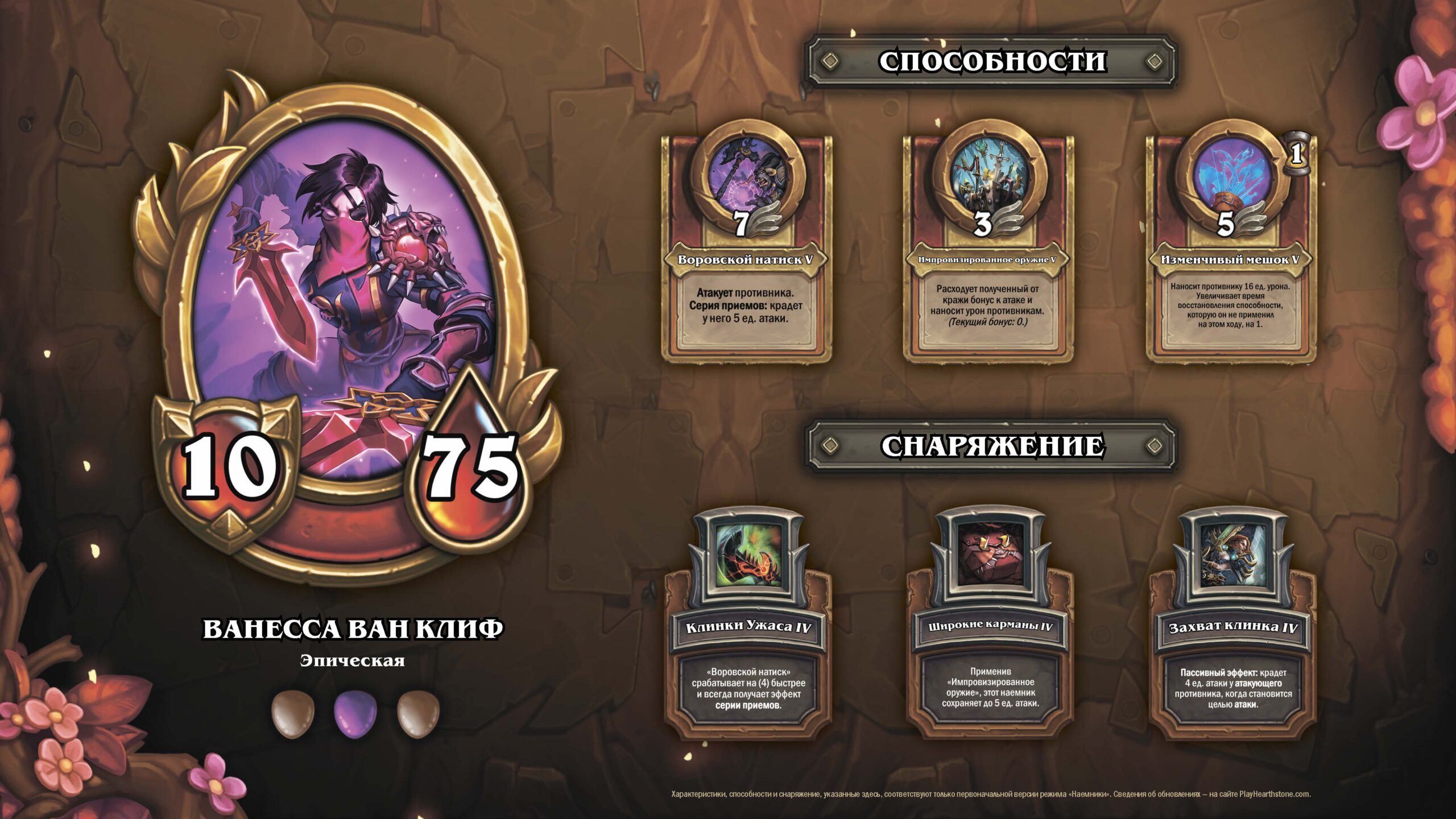 Ванесса — пират, что важно из-за синергии с Эдвином ван Клифом. Предмет Эдвина Черный флаг ускоряет всех пиратов на столе на 4, так что способности Ванессы не такие медленные, как может показаться на первый взгляд.