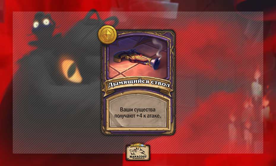 Каждый патч разработчики нерфят Дымящийся ствол. Ранее они делали просто все более сложные квесты для этой награды. Теперь они поменяли бонус с +5 до +4 к атаке. Даже с новым числом пассивка все еще сильная: недооценивать ее не стоит. Как и всегда, лучше всего Дымящийся ствол проявит себя на столах с божественными щитами или с призывом токенов (чаще всего это делают звери и мехи).