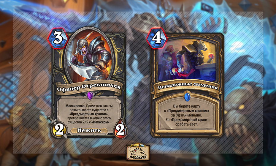 Разбойник на хрипах также ощутил серьезный удар. Из-за повышения стоимости Офицера Отрекшихся и Ненадежных сведений для колоды схлопнулся ход, когда она могла выставить Кладбище Снегопада. Архетип был настолько силен ровно потому, что мог неожиданно призвать несколько огромных существ уже на 4-й ход. Теперь весь потенциал сместился в сторону лейтгейма, что очень плохо для сборок, которые побеждают исключительно от стола.