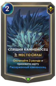 Текст: Разыгрывая карту, уничтожьте место силы. Если оно союзное, призовите карту Рассерженный камненосец.