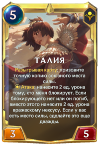 Талия 2 уровня получает мощный эффект к атаке, что позволяет ей расчищать мелочь со стола противника, при этом нанося урон вражескому нексусу.