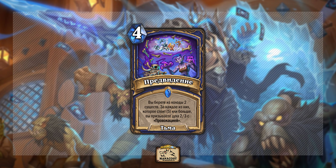 Предвидение — еще одна проблемная карта Эволв Шамана. Да, это Дренеи-каторжники, которые добирают целых две карты, и это нечестно, однако ее проблема совсем не в этом. Предвидение накладывает на колоду серьезное ограничение декбилдинга, а значит в нем должна быть какая-то дополнительная выгода — пусть это будет пара дешевых/бесплатных «стенок».