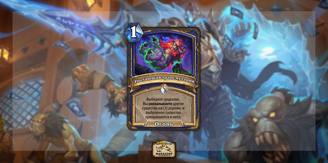 К текущему положению Эволв Шамана привела одна единственная карта — Пылающая трансмутация. Колода и до ее появления была в неплохом состоянии, однако удвоенная возможность ранней эволюции (в дополнении к Луже жижи ) стала убийственной для меты.