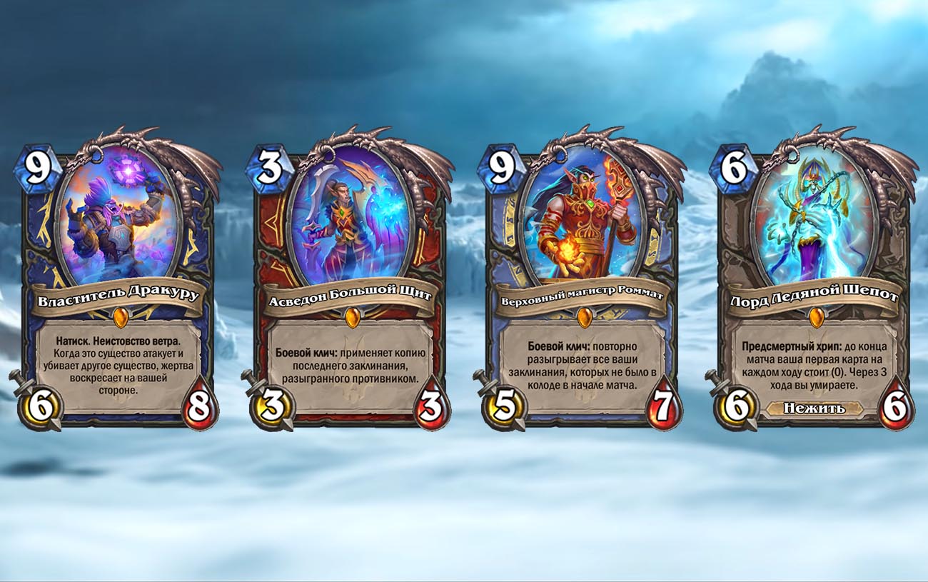 Разработчикам стоит сделать что-то с этими легендарками, потому что сейчас они совсем не работают. У Властителя Дракуру, Верховного магистра Роммата и Лорда Ледяной Шепот отличные и веселые эффекты, но слишком слабые для нынешней меты. Карты можно уверенно делать дешевле или думать о какой-то переработке их эффектов.