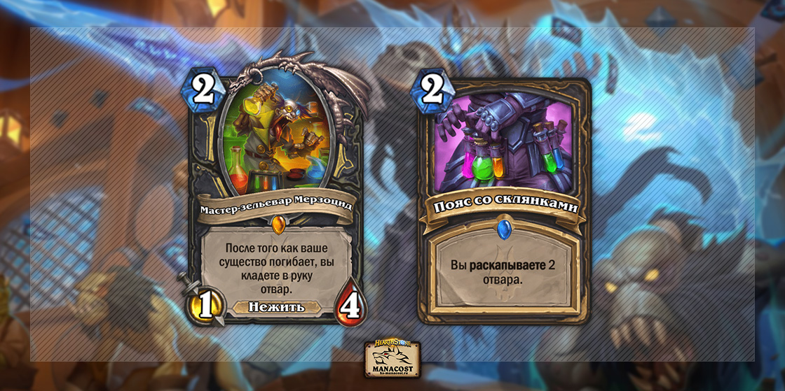 Если говорить об отварах, то самыми заметными картами являются Пояс со склянками и Мастер-зельевар Мерзоцид. Последний может стать огромным источником выгоды и самостоятельно принести победу, если противник не сможет от него быстро избавиться. В то же время карту не всегда просто реализовать, особенно если речь идет о Разбойнике на воровстве. Возможно, стоимость Мерзоцида поднимется до 3, но пока что этот нерф кажется самым маловероятным.