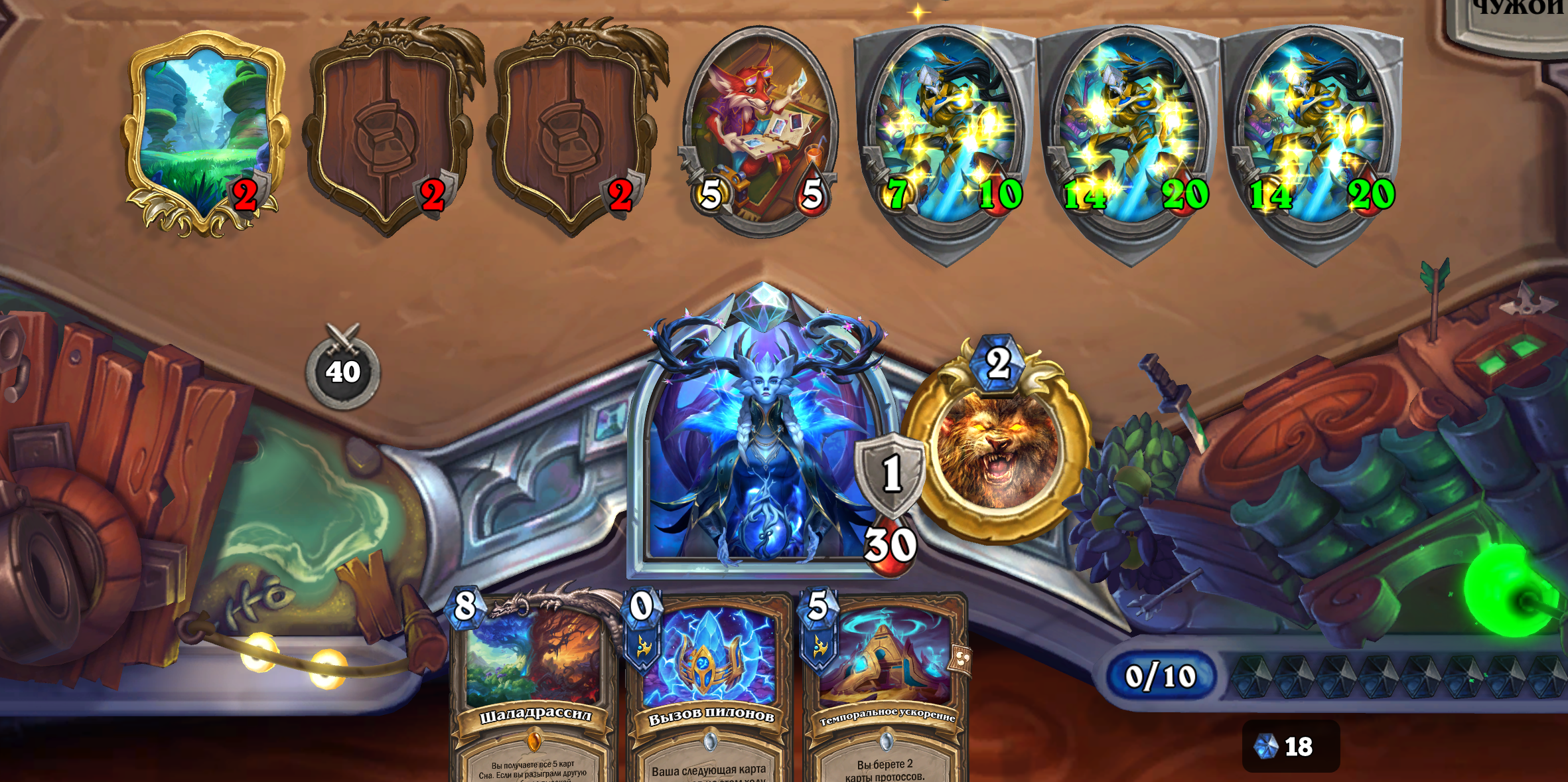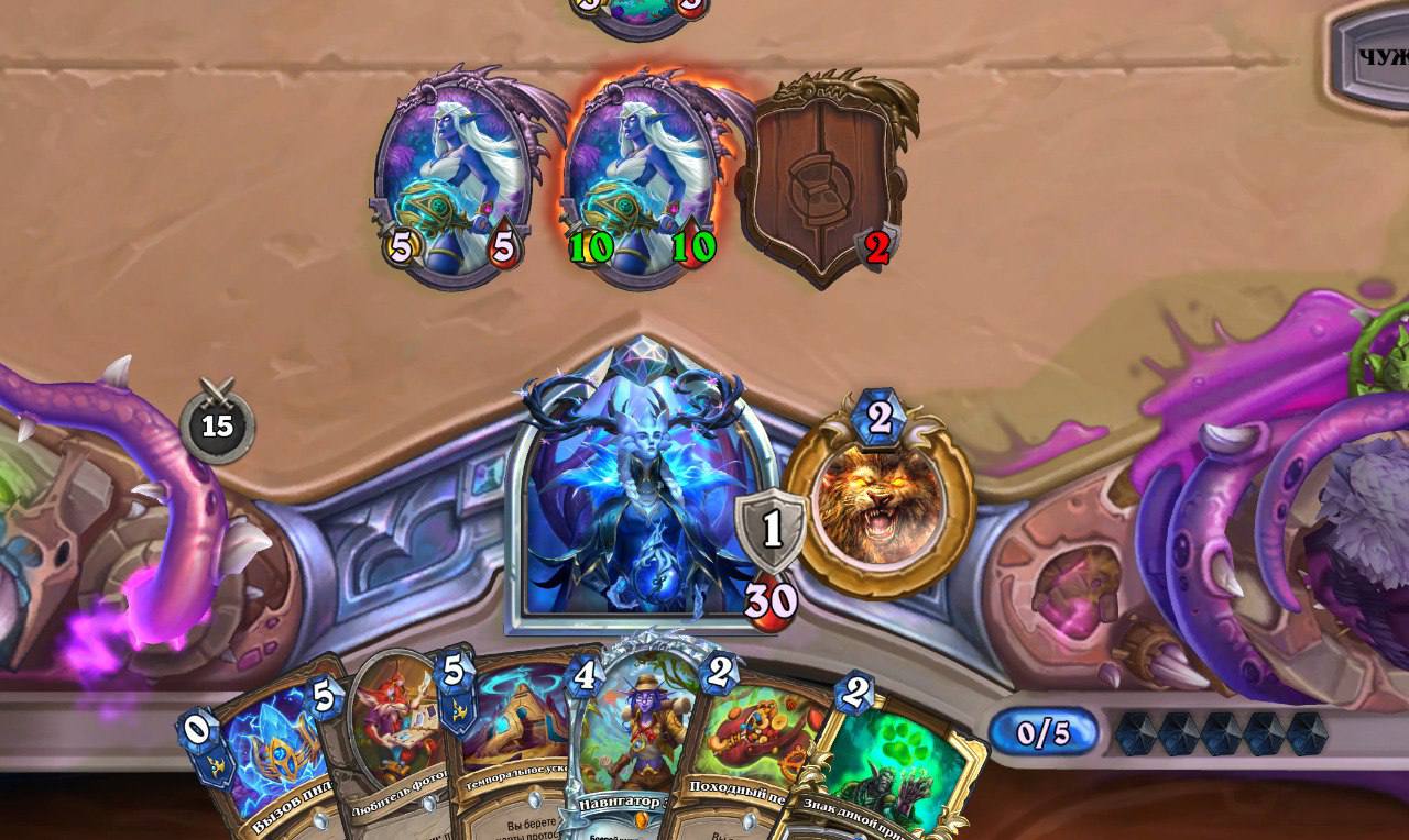 Прохлаждающийся Вол’джин у Жреца может также создать вам проблемы, если вы оставляете крупное существо на столе. Всегда помните это, играя против Андуина.