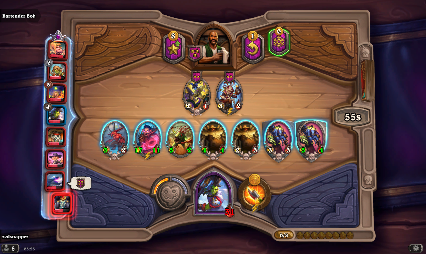 Патч 22.4 уже в игре, а с ним и 3 новых героя Полей сражений — Рокара, Ониксия и Варден Луч Рассвета. Вернулись и три героя, недоступных после патча с компаньонами, — Принц Кель’Тас, Нави’Ла и Сайлас Новолуний. Разбираемся в основах геймплея всех этих персонажей в актуальном патче Hearthstone Battlegrounds. Не самый сильный, но стабильный герой. Лучше брать его в лобби с элементалями и механизмами, потому что сила героя неплохо работает с синергиями мести. Многое сделают Слепящее порождение Света и Механотанк. Со старта главный приоритет Ониксии — найти липких существ вроде Шалопайки, Аколита К’Туна и Микромумии. Оставайтесь на 1 уровне таверны до хода с 6-7 монетами и заполняйте стол по максимуму. Так вы быстро получите компаньона и сможете раскачивать его характеристики. Обычно компаньон остается на столе до захода двух дополнительных копий, а потом и до конца партии. Играйте ранние триплеты после взятия 3 уровня таверны и старайтесь брать тир-4 после — обычно это можно сделать в ход с 8 монетами. Слабее вы не станете, потому что много темпа дадут сила героя и компаньон. Дальнейший геймплей зависит от захода существ с местью и других синергий. Варден неплохо собирает триплеты — особенно в начале партии. Дольше оставайтесь на 1 уровне таверны, чтобы найти один или два триплета и сыграть их под взятие 3 уровня таверны в ходы с 7 или 8 монетами. Компаньон Варден дает неплохие характеристики, что особенно полезно в мидгейме. Проблема в том, что в бою компаньон делает немногое — не бойтесь продавать обычную или золотую копию перед сложным или финальным поединком, чтобы поставить в свободный слот что-то сильнее. Самый слабый из новых героев с достаточно посредственными способностью и компаньоном. Чтобы дать серьезные баффы существам с помощью силы героя, нужно постоянно доминировать и опережать противников по темпу, что возможно далеко не всегда. Компаньон очень медленный и из-за своего тира, и из-за низкого показателя атаки. Даже если он получит много дополнительного здоровья (что происходит не так уж быстро и стабильно), баффнуть компаньону атаку все равно будет трудно. В начале партии обращайте внимание на существ, которые могут надолго остаться на столе — вплоть до мид и даже лейтнейма. Это Заклинатель гнева и механизмы. Им куда выгоднее баффать атаку с помощью силы героя. Не бойтесь продавать компаньона до захода его триплета, если у существа слишком низкие характеристики, а впереди тяжелый бой. Самый сильный из новых героев, добавленных в патче. Да, Сайлас уже был в игре ранее, но после появления компаньонов никто не мог играть им — его вернули в режим только с выходом патча 22.4. И пусть герой старый, его компаньон — новый. И кажется, это один из самых сильных компаньонов в режиме. Задача Сайласа — дожить до взятия 6 уровня таверны и захода золотого компаньона. Как только это происходит, вы чуть ли не автоматически побеждаете в лобби. Покупайте всех существ с баффом билетов — это бесплатно, потому что две монеты тут же даст компаньон, а еще одну вы получите после продажи существа. За ход вы сможете много раз раскопать тир-6 существ с силы героя, найти несколько Адаптозавров или других топовых угроз для вашего стола. Самое сложное — дожить до взятия тир-6. Впрочем, Сайлас не так плох со старта: его сила героя рандомная, но все же достаточно стабильно да