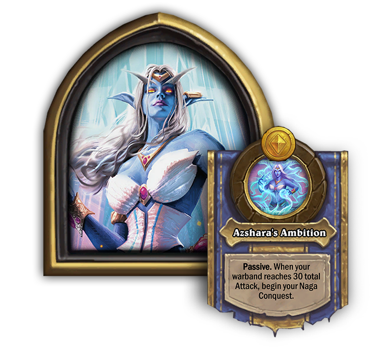 Королева Азшара станет новым героем на Полях сражений. Высокорожденная королева и ее подданные были прокляты, чтобы провести остаток своих дней в облике мстительных наг. После превращения в нагу королева Азшара сможет призывать все больше и больше наг под ваше командование! Сможете ли вы привести их к победе?