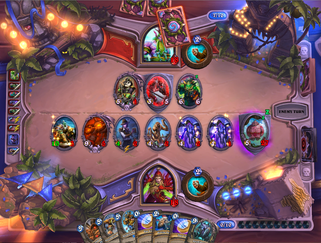 Сила героя использует от 1 до 10 оставшейся маны и развешивает столько же украшений. Как только 25 украшений будут развешаны, в начале нового хода на столе появится Пиньята-голем.