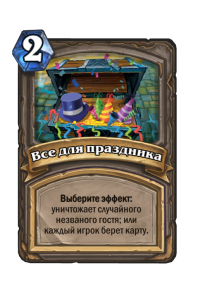 Когда Пиньята будет перелетать на другую половину стола, она может нанести всем персонажам 2 ед. урона, в том числе и героям. Нетронутыми будут только Незваные гости. Из-за этого не стоит оставлять на столе существ с 2 ед. здоровья. Лучше их разменять или как-то баффнуть. Исцеление на существ лучше не использовать, потому что оно ценно для героев.
