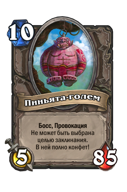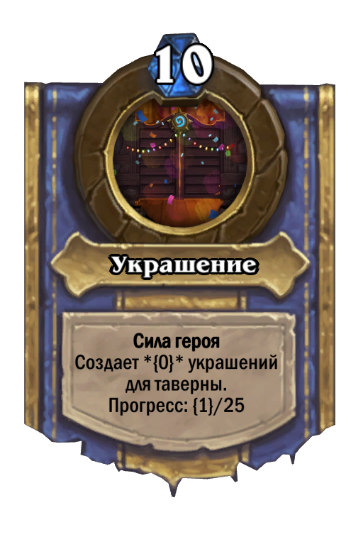 Сила героя использует от 1 до 10 оставшейся маны и развешивает столько же украшений. Как только 25 украшений будут развешаны, в начале нового хода на столе появится Пиньята-голем.