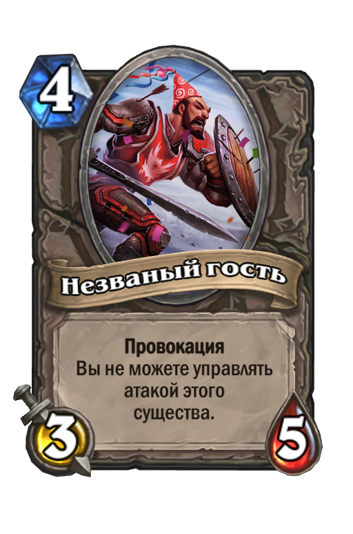 Моментально предотвратить удар Незваного гостя трудно, поскольку каждый новый появляется на стороне активного игрока, а разменяться он сможет только с тем, что уже ударил его напротив. Единственный вариант — использовать ремувал на появившегося гостя, например Близость к природе.