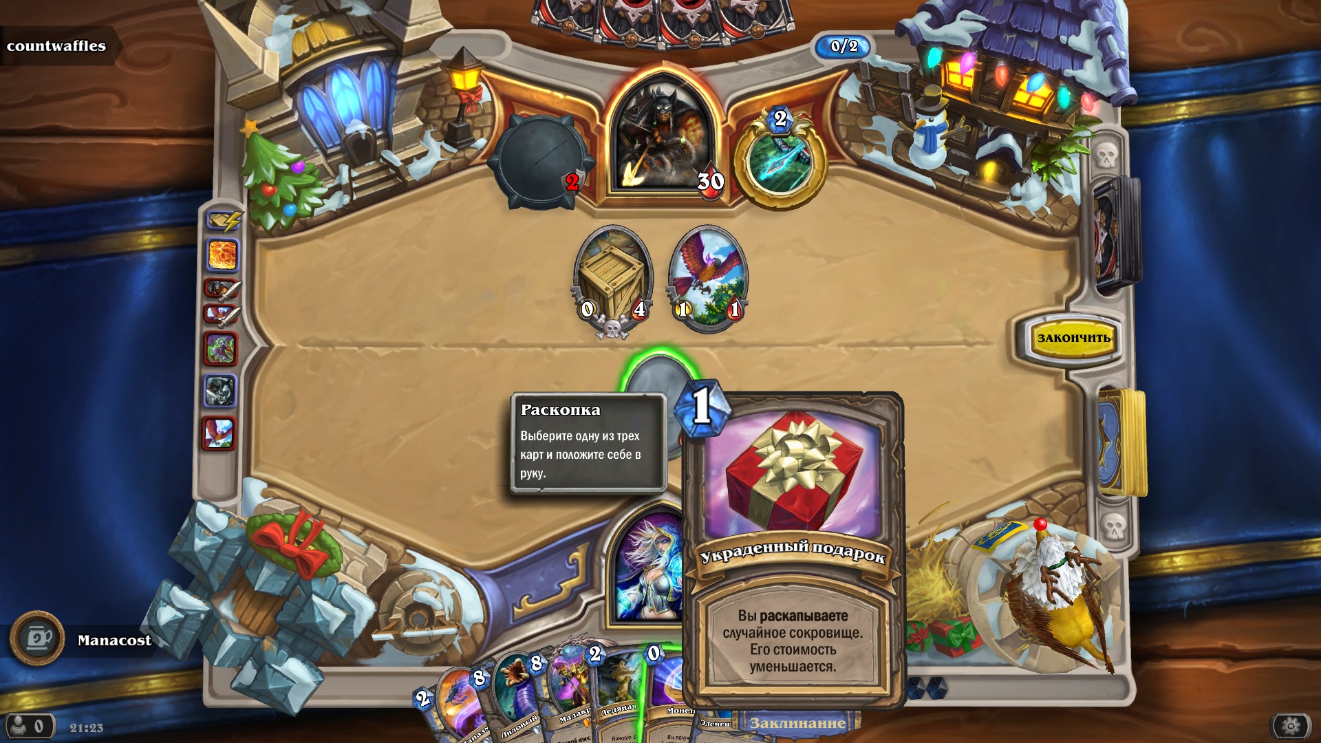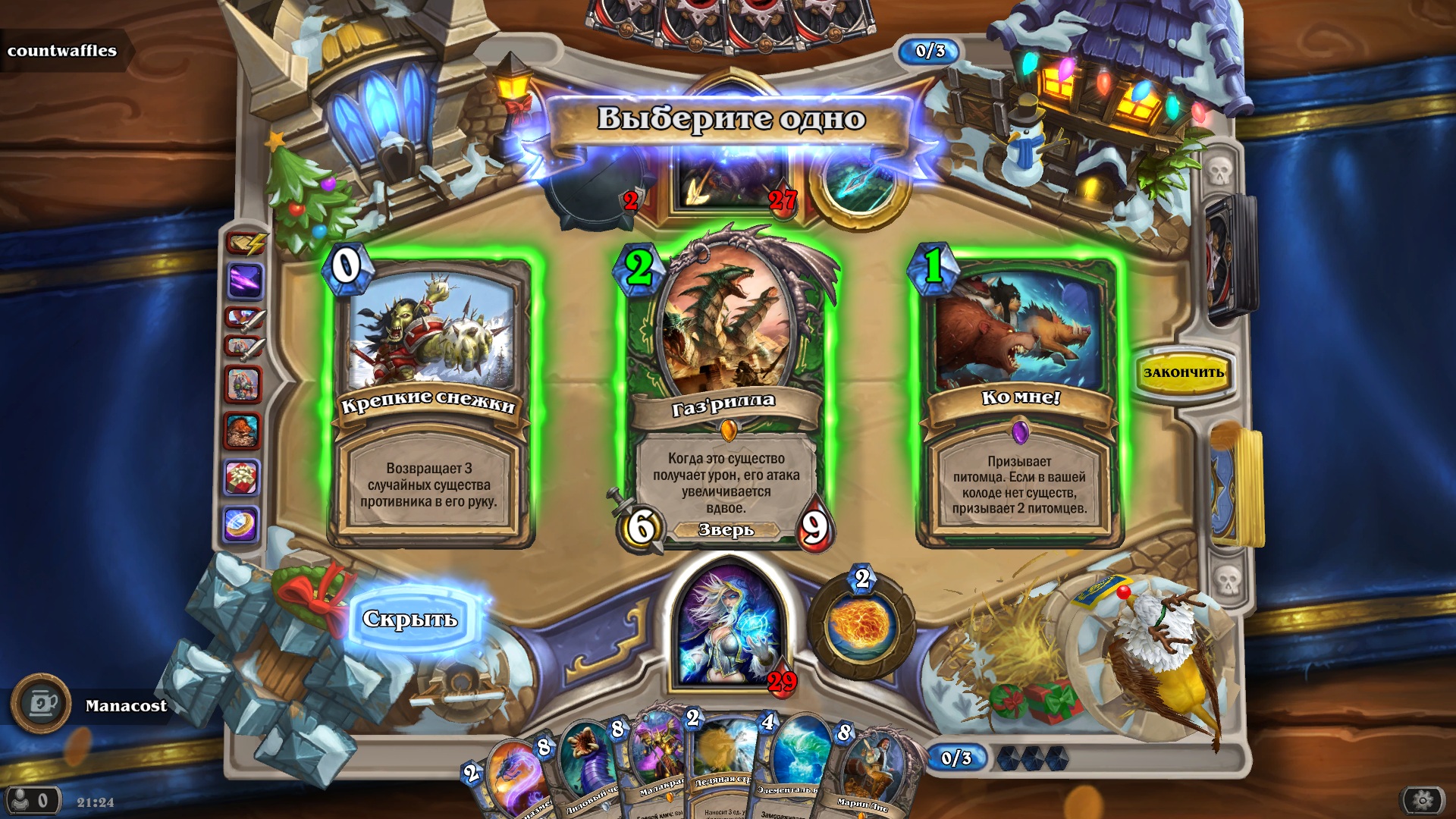 Также есть шанс раскопать уникальную карту потасовки Крепкие снежки стоимостью 0 маны: «Возвращает 3 случайных существа противника в его руку». Это очень сильная карта в этой потасовке, и ее стоит брать в большинстве случаев.
