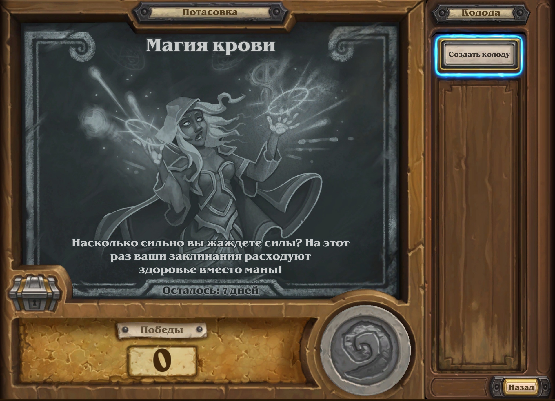 Описание потасовки: Насколько сильно вы жаждете силы? На этот раз ваши заклинания расходуют здоровье место маны!