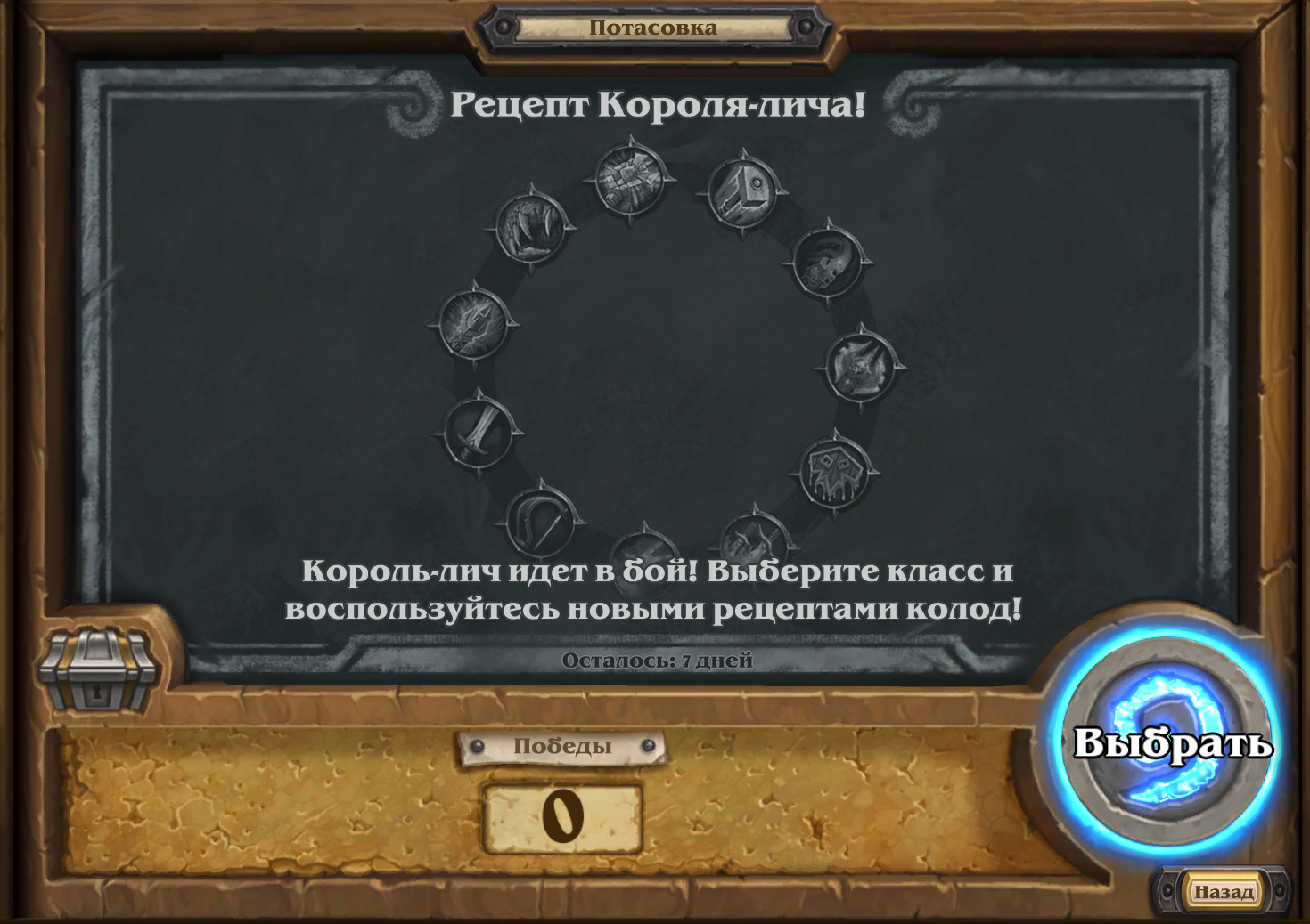 - Колоду собирать не нужно. Вам выдадут новый рецепт из Марша Короля-лича на выбранный класс.