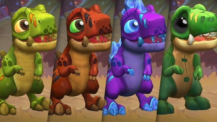 Представляем вашему вниманию первого коллекционного питомца, Короля Круша! Мини-версия жизнерадостного — и яростного — зеленого динозавра станет идеальным партнером для похода в Затерянный город Ун’Горо! Прирученный динозавр будет рычать и клацать своими маленькими клыками на вашей стороне поля во время матчей, как настоящий друг первобытного человека.