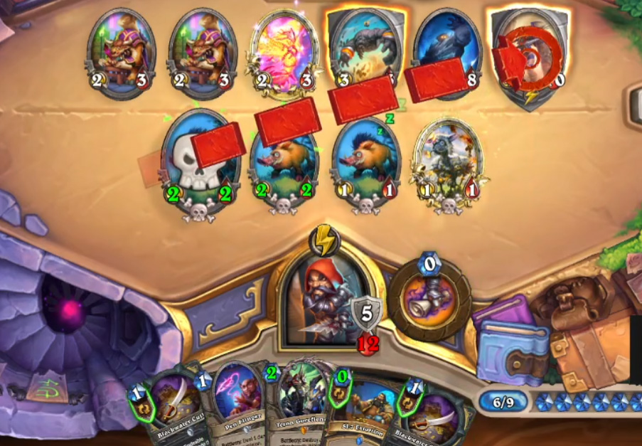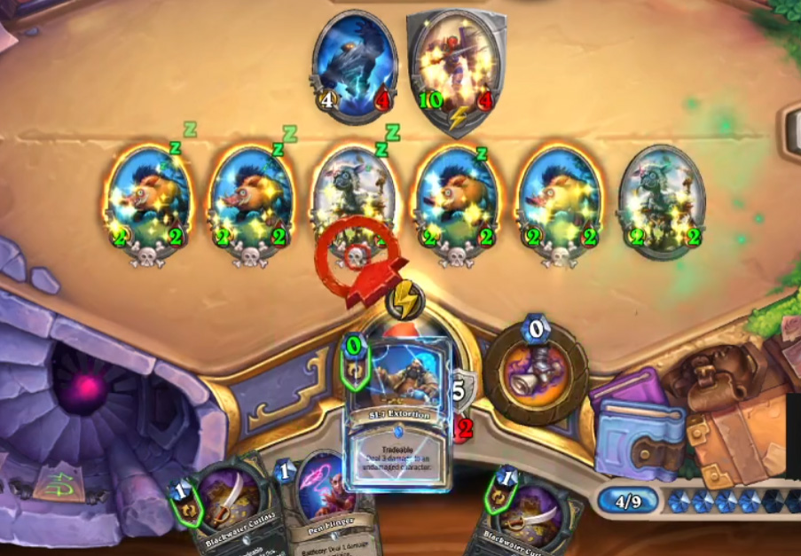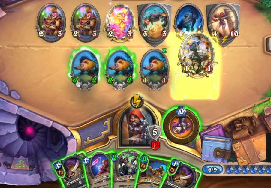 Новый Элвиннский Разбойник старается разыграть всех вепрей и получить Меч тысячи истин в один ход. Для этого он использует комбинацию из следующих карт: