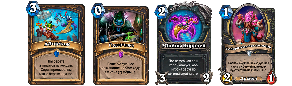 - Всегда оставлять: Абордаж, Собиратель астероидов, Убийца Королей, Подготовка