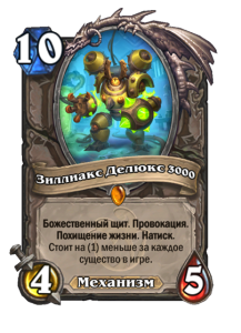 - Удешевить Зиллиакса, который стоит (5), возвращенной мини-версией Негодяя из песочницы — на (3) боевым кличем и еще на (1) самим существом.