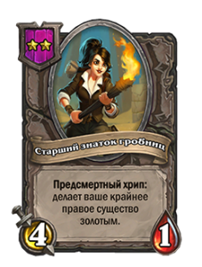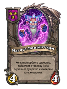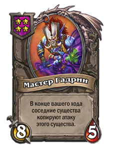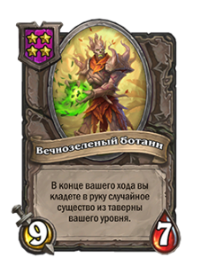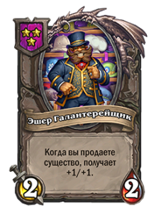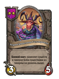 - [Золотая версия] До изменения: когда вы разыгрываете существо, добавляет 2 существ с «Боевым кличем» в таверну Боба.