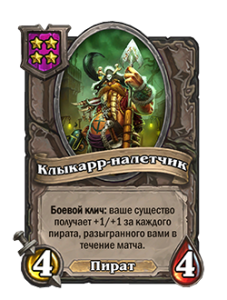 - После: после того как вы разыгрываете существо, добавляет существо с «Боевым кличем» в таверну Боба. Оно получает +2/+2.