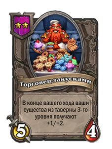 - После: в конце вашего хода ваши существа из таверны 3-го уровня получают +1/+2.