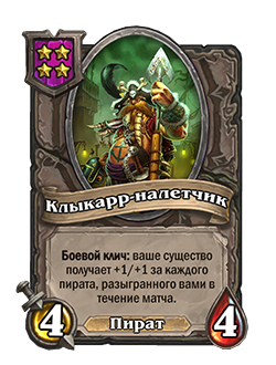 - После: после того как вы разыгрываете существо, добавляет существо с «Боевым кличем» в таверну Боба. Оно получает +2/+2.