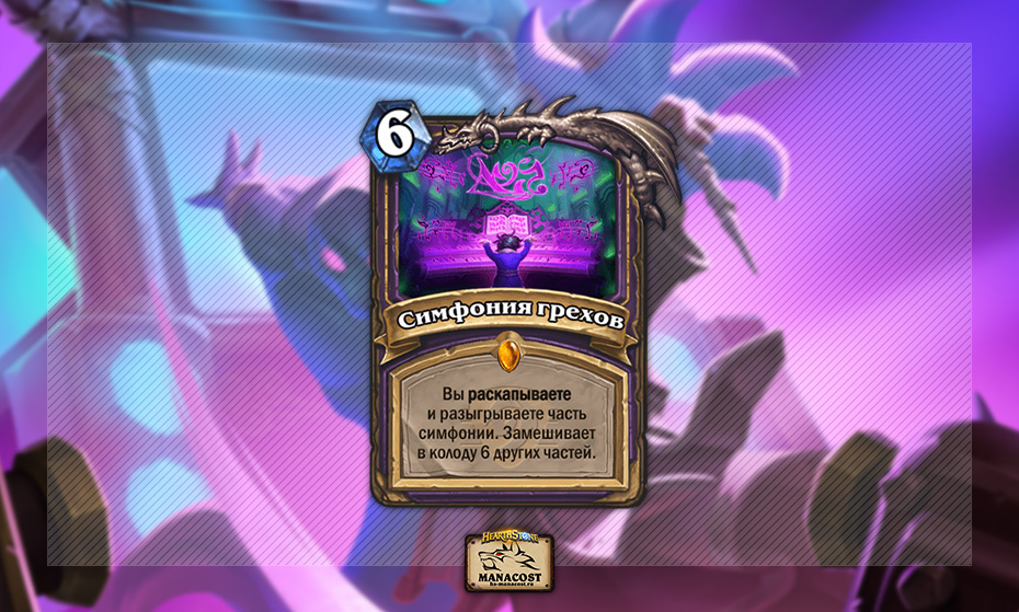 Симфонию грехов без каких-либо «но» можно назвать самой ожидаемой картой дополнения. Она интересная, она выглядит сильно, она предоставляет разный геймплей в момент розыгрыша, она дает серьезный потенциал Чернокнижнику в лейтгейме.