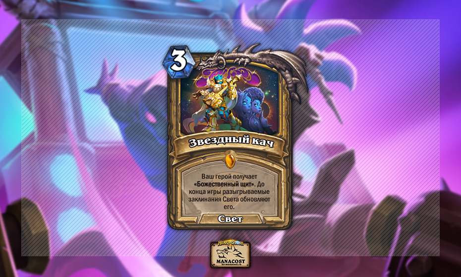 Паладину повезло: ему совсем не пришлось страдать от отсутствия Озаренной Кариэль — замена подоспела незамедлительно. У Звездного кача несколько другая механика, и конечно, он не дает так много выживаемости Паладину, как карта героя, но он достаточно недорогой, а обновлять эффект должно быть очень легко. Если у противника не будет удобного способа нанести 1 ед. урона, Звездный кач будет очень надоедливым.