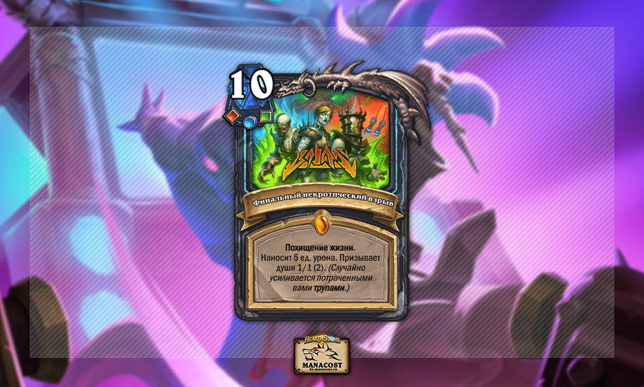 Важно знать, что Финальный некротический взрыв — одна из двух песен, которые нельзя получить случайным образом, в т.ч. раскопать, а значит карта даже неожиданно никогда не покажется в партиях. Может оно и к лучшему, поскольку пул раскопки Рыцаря смерти и так слишком хорош. А для других классов такая генерация была бы медвежьей услугой — они не тратят трупы, а значит заклинание всегда будет неулучшенным.