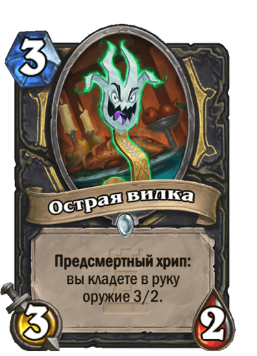 Учитывая формулировку «оружие/существо», а также Стального палача, которого также упомянул разработчик, можно предположить, что новая карта — это не просто существо, которое дает вам оружие. В игре было уже очень много подобных существ, у которых оружие было частью боевого клича или предсмертного хрипа, однако новая карта, судя по всему, будет чем-то иным — существом и оружием одновременно?