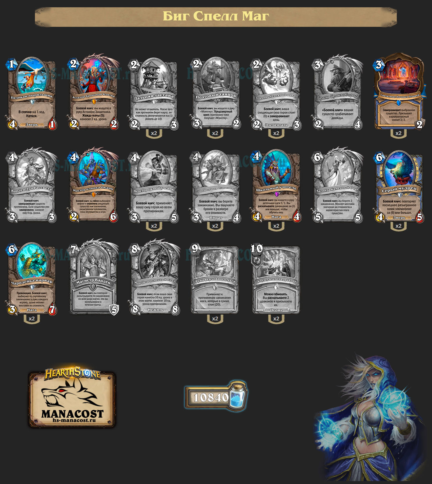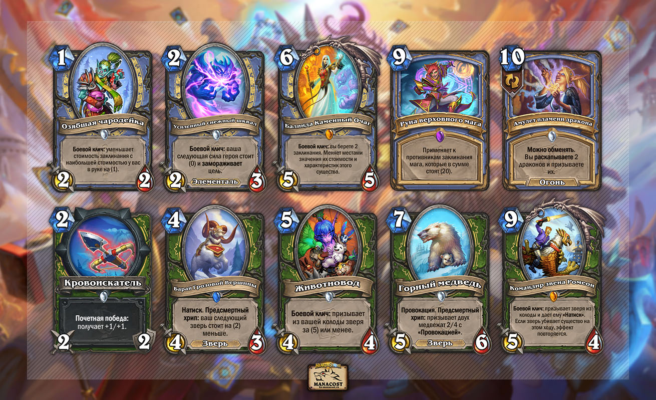 Биг Спелл Маг, первые весточки которого пришли в Штормграде, по-настоящему зародился именно в Альтераке с Балиндой Каменный Очаг, Руной верховного мага и Амулетом драконьего пламени. Маг также теряет и пару ранних дропов. Другой сильный набор карт был у Охотника, который позволил ему собрать Биг Бист архетип — с ротацией уйдут Животновод, Горный медведь и Командир звена Ромеон.