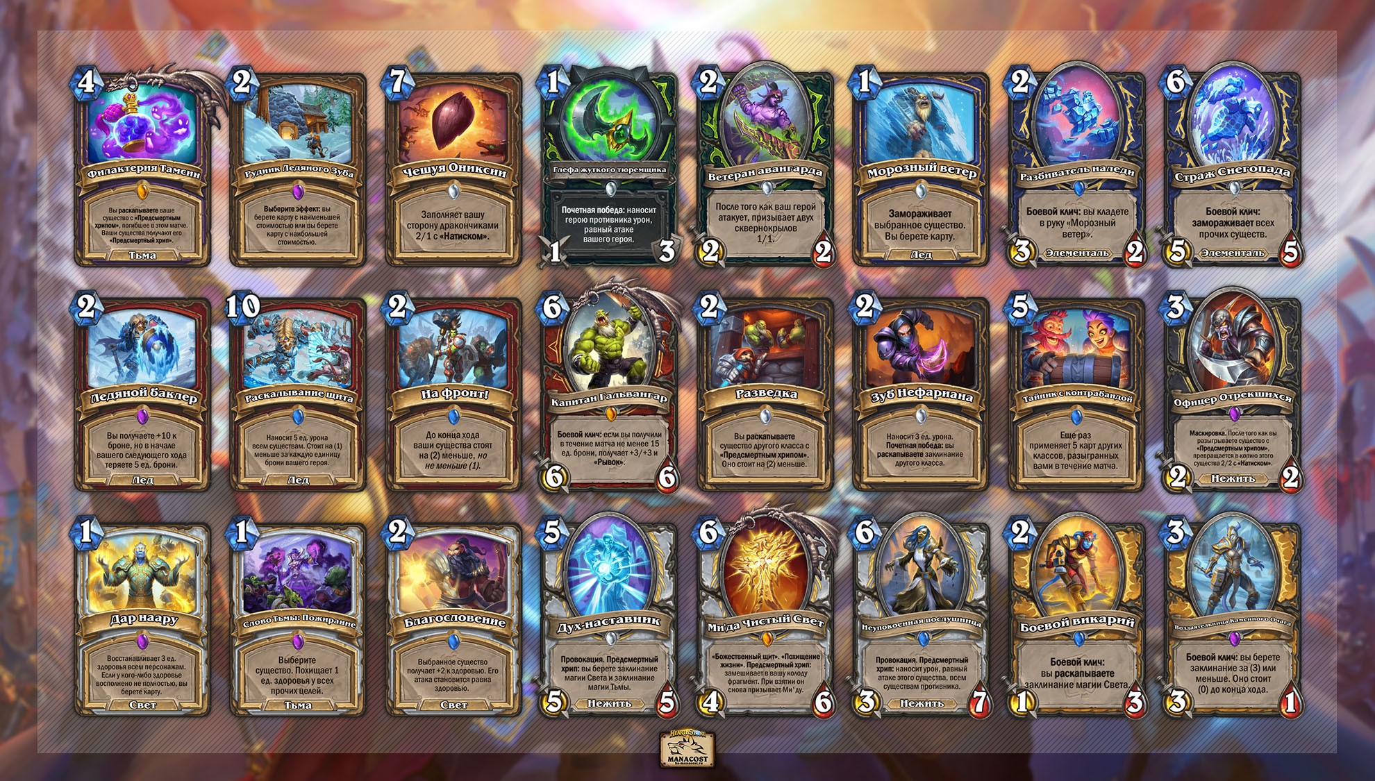 Остальные классы потеряют мало важных карт, но некоторые из них действительно станут критической потерей. Среди самых заметных — Чешуя Ониксии, Ледяной баклер и Раскалывание щита, комбинации с На фронт!, Благословение, Тайник с контрабандой и Филактерия Тамсин.