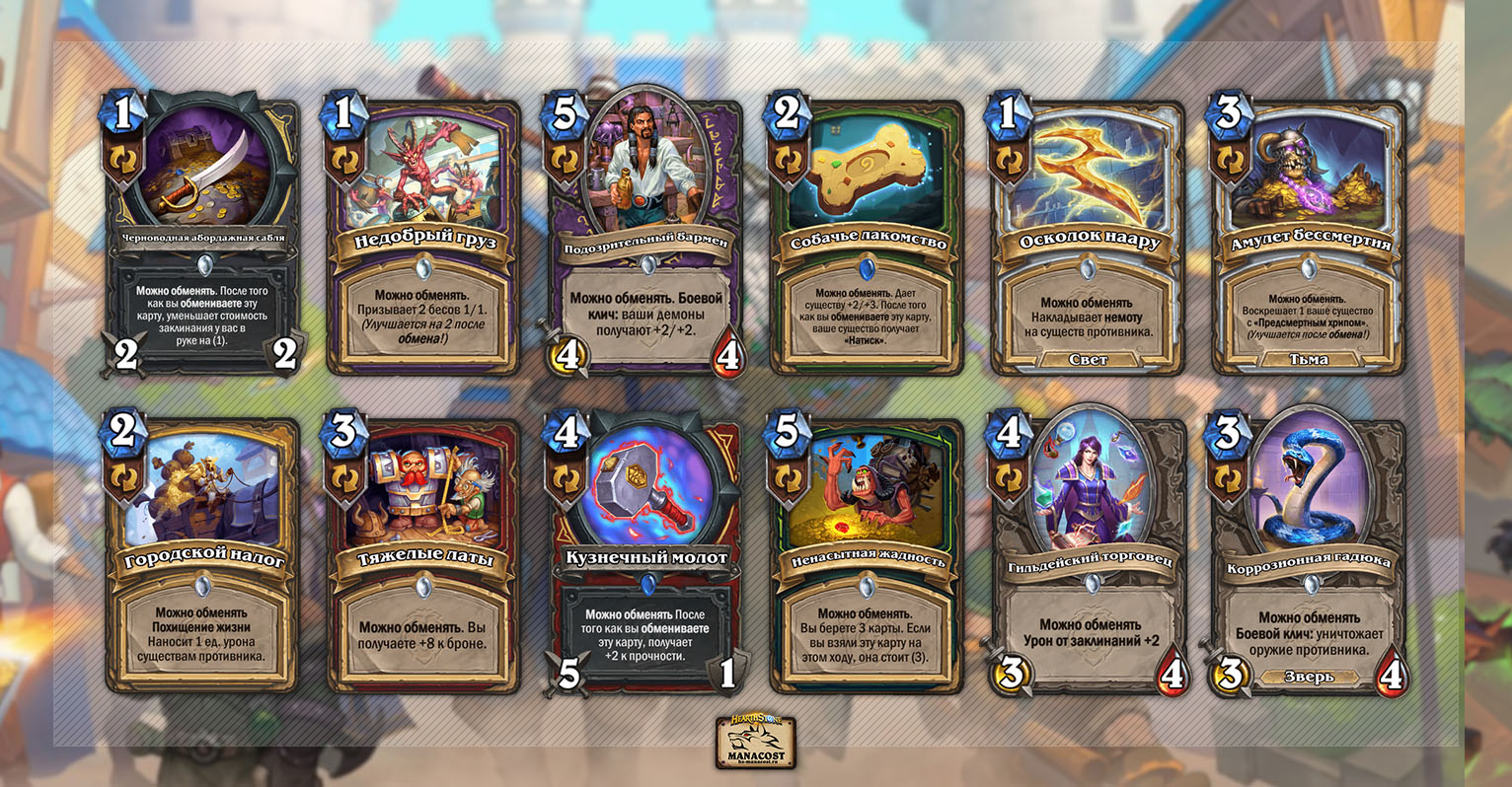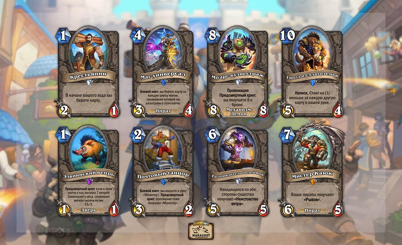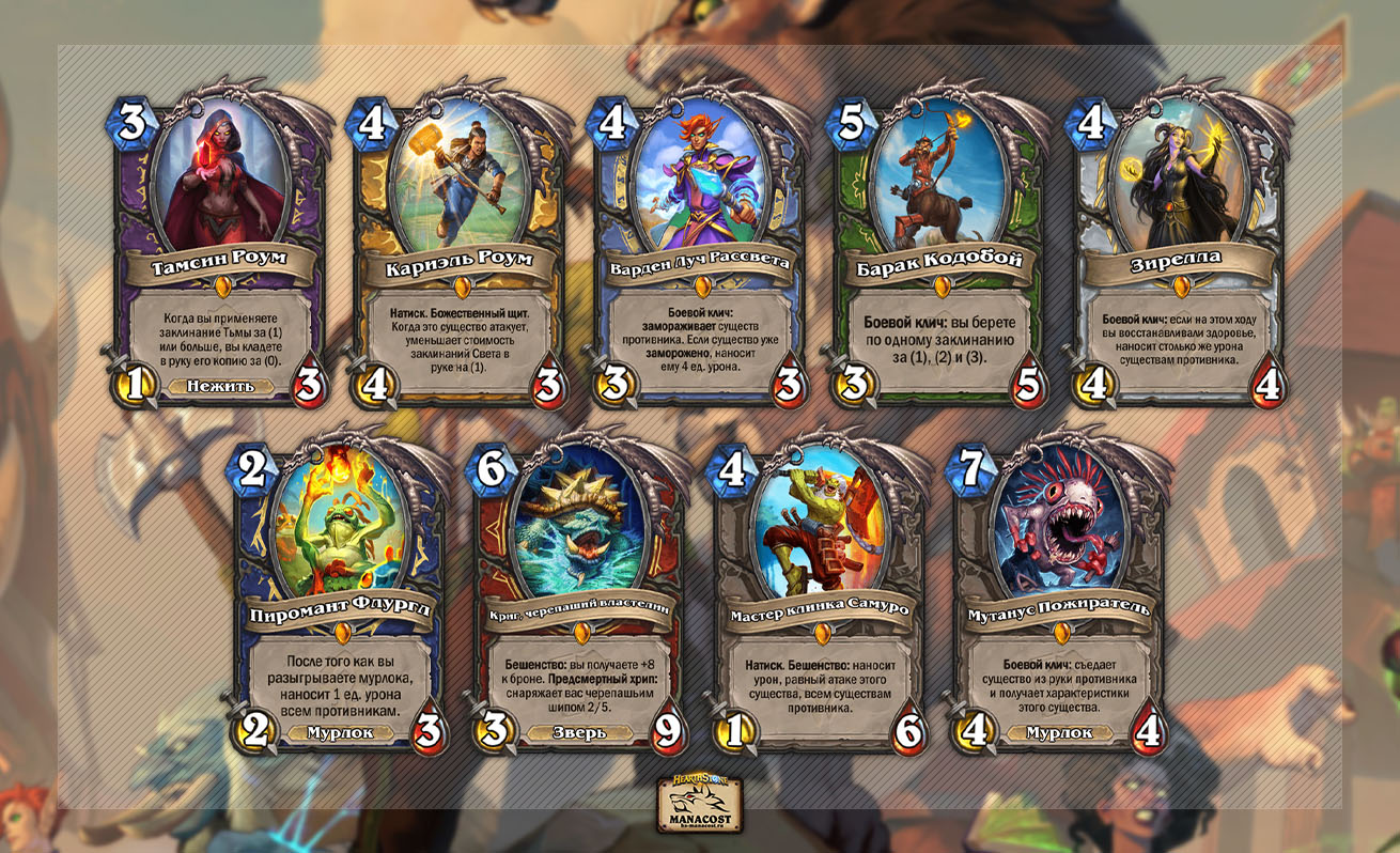 Нейтральные карты дополнения помимо обменных могут похвастаться такими существами, как Гнолл из Златоземья, Маг-универсал, Почтовый танцор и Крестьянин. Конечно, нельзя не упомянуть Мистера Каюка, который хоть уже давно и не актуален, но в свое время наделал много шума в Стандарте.