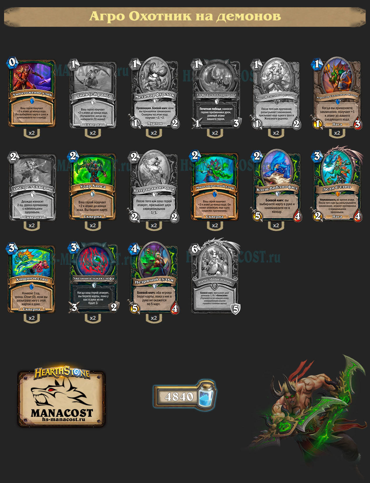 Добавьте сюда и то, что ДК — хорошо адаптирующийся класс с рядом разных стратегий. Если в мете будет много дек, которые играют от стола, Фрост ДК станет имбой. Если будет много агрессии, вас спасет ДК Крови. Большое количество мидрейндж темповых дек остановит сверхагрессивный ДК Нечестивости. И есть вероятность, что с Фестивалем легенд у Рыцаря смерти появятся и другие деки и стратегии.