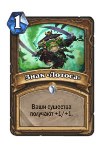Спустя много лет Знак «Лотоса» остается единственным массовым баффом за (1) без негативного эффекта. У заклинания было несколько аналогов, но все они параллельно делали что-то неприятное (сбрасывали карту, уничтожали существо, давали перегрузку). И вот наконец-то появился новый массовый бафф, негативный эффект которого не играет никакой роли.![]()