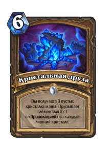 Забавно, что при выборе восстановления трех кристаллов маны Сон под звездами становится двойным Озарением (или понерфленным Искроцветом без перегрузки). Вы не получите ману сверх имеющейся, но все равно это открывает определенные возможности для комбинаций. Не стоит забывать, что Друид получает новые просторы для рампа в дополнении, и реализовать такой план должно быть намного легче.