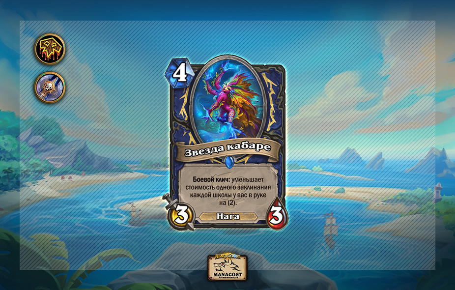 Что же делает Звезда кабаре, кроме того что просто удешевляет разные заклинания в руке? Самое интересное — это комбинации с дорогими заклинаниями. Сейчас у Шамана есть 3 таких заклинания, и сыграть два из них на ход-два раньше будет приятно. В частности, особенно интересно смотрится Волшебная звезда. Будет ли такая комбинация лучше Хагаты Мифической? Не слишком ли это медленно?