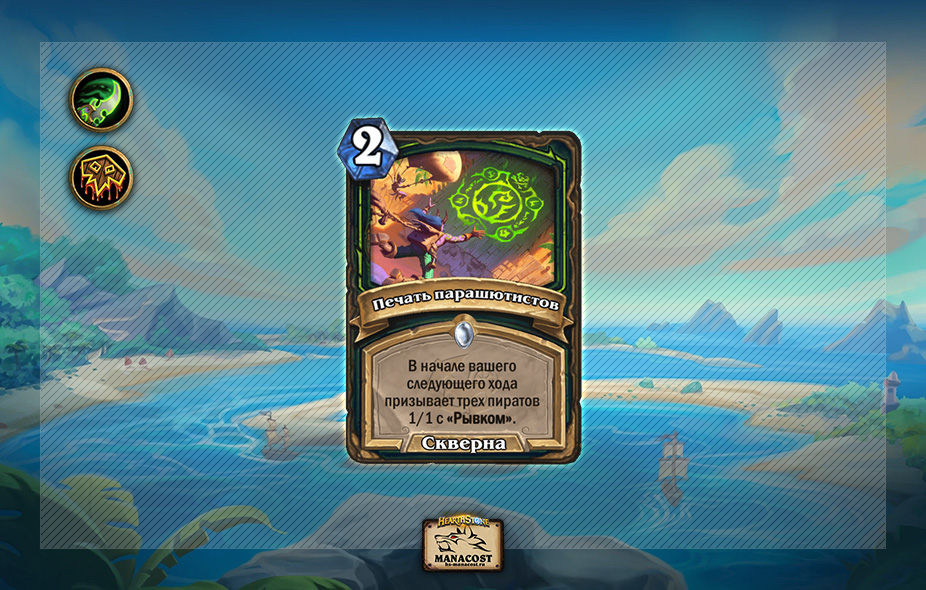 Стоит отметить интересную синергию этого заклинания для Шамана Природы. Оно призывает три цели под известную комбинацию Проводимость + ДЖАЙВ НАСЕКОМОЕ! Так реализовать ее будет еще легче, а сами пираты нанесут еще немного урона в лицо. Сюда же можно приписать эффекты класса, которые превращают существ в другие. Например, Печать парашютистов интересно смотрится в колоде с Приступом ностальгии.