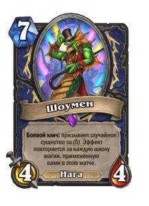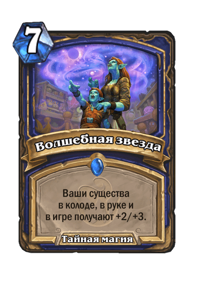Что же делает Звезда кабаре, кроме того что просто удешевляет разные заклинания в руке? Самое интересное — это комбинации с дорогими заклинаниями. Сейчас у Шамана есть 3 таких заклинания, и сыграть два из них на ход-два раньше будет приятно. В частности, особенно интересно смотрится Волшебная звезда. Будет ли такая комбинация лучше Хагаты Мифической? Не слишком ли это медленно?