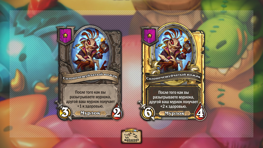 В первые два поединка это существо проиграет многим 1-м дропам, не даст экономического преимущества в ход с 5 монетами, да и мало чего сделает далее по игре. Даже если придет две пары и много других мурлоков, все эти синергии в начале игры крайне сомнительные.