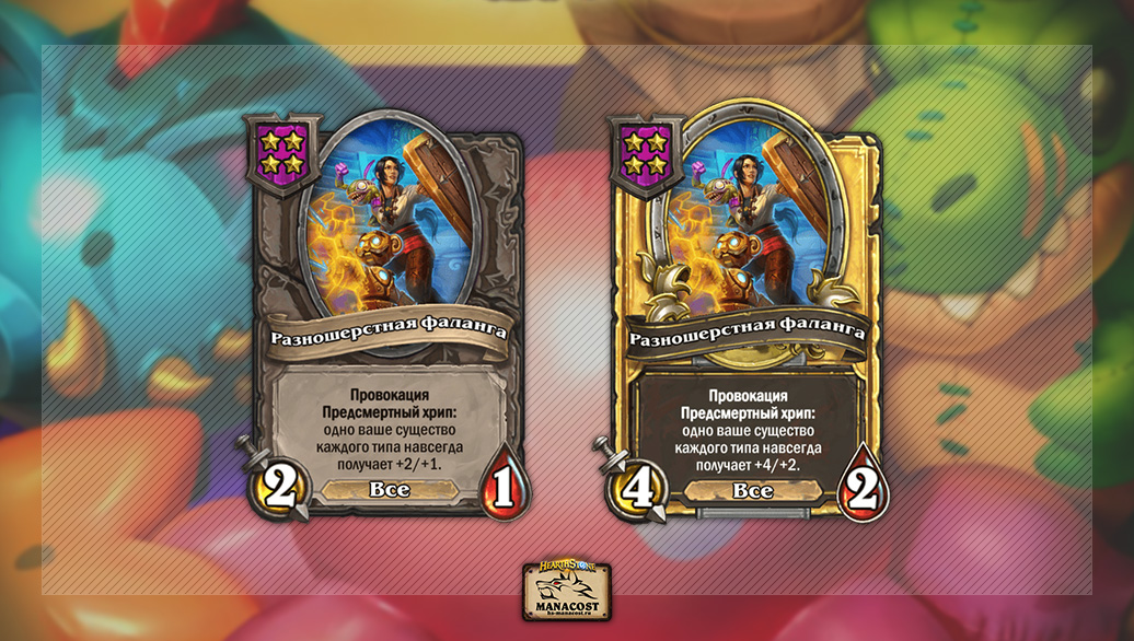 Что с тобой стало, Разношерстная фаланга? Стратегии через разные типы существ слабые в любом случае, играете ли вы через Рыцаря Клыков Света, Бранна Бронзоборода или тем более через этот юнит. Даже с Титом Ривендером, даже с баффом перерождения и даже в золотой форме Разношерстная фаланга дает слишком мало статов. Надеемся на баффы.