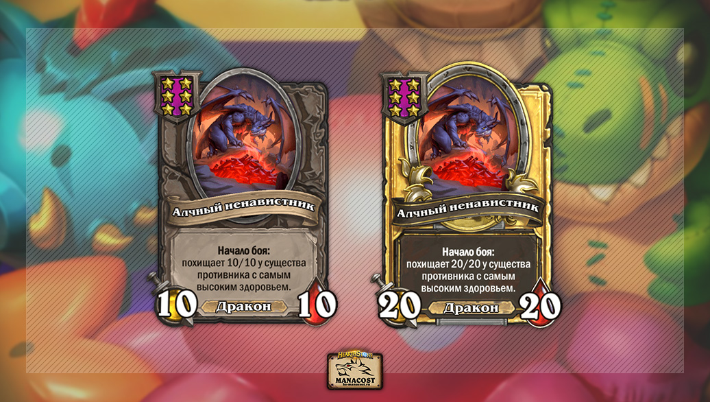 Этот тир-6 дракон всегда был плохим, даже во времена, когда все играли драконами и форсировали эту стратегию. Но вот драконами уже никто не играет, а Алчный ненавистник почему-то все еще в игре без каких-либо баффов. Сравните его с удаленной тир-4 Ночной Погибелью и почувствуйте разницу в силе. Вот там была мощная синергия с Упорным поэтом, а это воровство 10/10 статов — просто шутка.